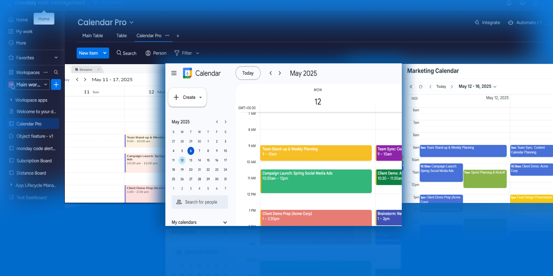 Jump between campaign launches, sprint plans, or interviews calendars in 1 click.